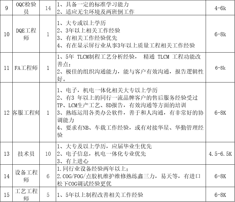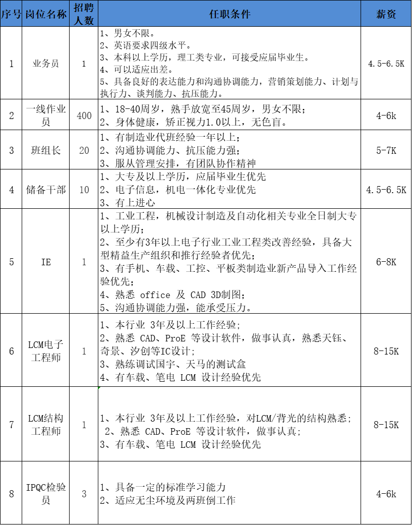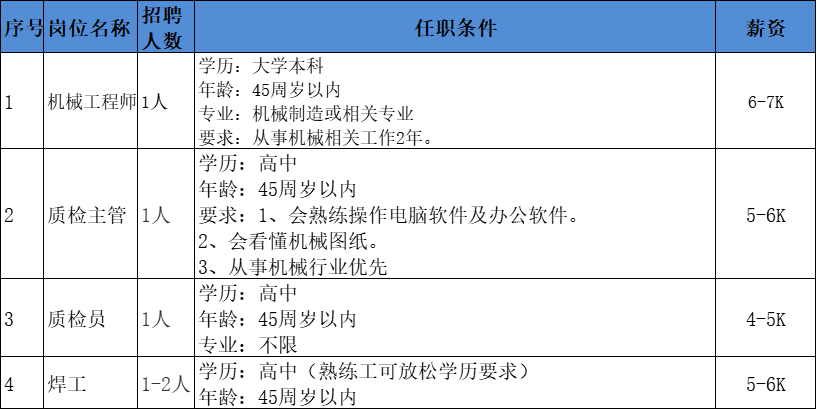 1、湖北联新显示科技有限公司 招聘岗位信息: 2、湖北大冶中海换热器有限公司 招聘岗位信息: 电话:卢先生19532161885 3、黄石市港仪服饰有限公司 岗位:车缝工200人,5.8k,18-45周岁,熟手放宽至48周岁,男女不限,身体健康,人品好。 福利:六险保障+厂车接送+中餐免费+全勤奖励+工龄工资+每月100元父母孝敬费+端午、中秋、春节礼物(春节礼物双份-包括长辈一份)+无疫情时组织一次国内旅游(3天) 地址:黄石市经济开发区金山大道199号湖北黄金山光亮配套园2、3号楼