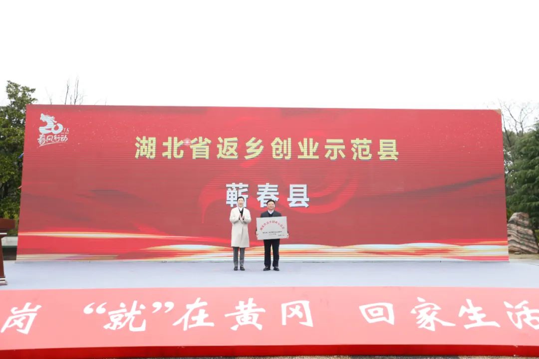 市委副书记、市长刘洁,市政府秘书长蔡绪安,市人社局党组书记、局长段焱山,市乡村振兴局党组书记、局长董本汉分别为获评2023年省级返乡创业示范县、示范园、示范项目的代表授牌。